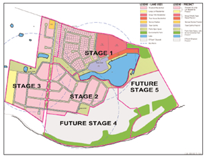 | Portfolio Projects and their joint venture partner Brockfield Land Developments have lodged an application for Material Change of Use and reconfiguration on 91ha of gently undulating selectively cleared land to create a Master Planned Community that will ultimately provide housing to in excess of 2000 residents and will incorporate shops and community services. The development of this site will include its’ own sewerage treatment plant to service the variety of residential accommodation that will be provided from townhouses, small lots, standard lots through to large lots. The site includes a town centre incorporating a tavern, small convenience centre and professional offices. The town centre will be situated on a central recreational lake. Approvals for stage 1 are due at the end of 2007 and construction in 2008. ![]() |